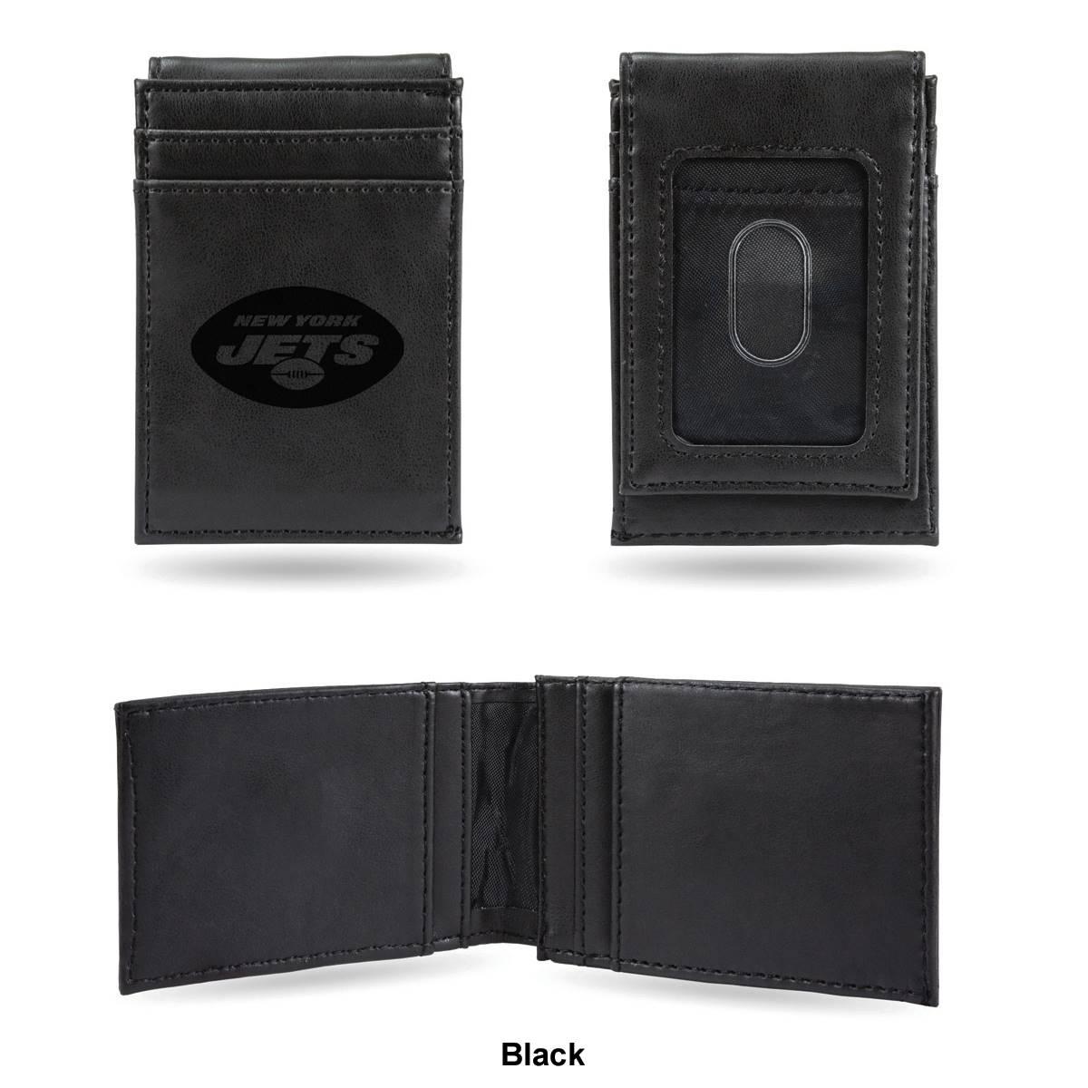 Put your money where your fandom is with this cool Mens NFL New York Jets front pocket wallet. Made from faux leather, the 4-inch long and 2.75-inch wide wallet has a New York Jets embossed logo with an ID window on the front and card slots. Show your love for your favorite team with this front pocket wallet.