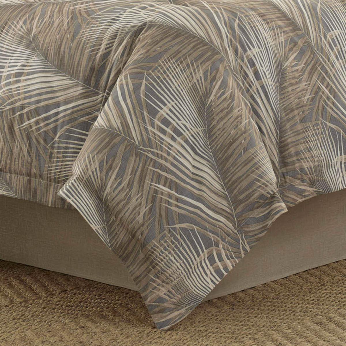 Create an elegant island oasis at home with Tommy Bahaman Raffia Palms comforter set. The comforter features sand-swept neutral tones of driftwood grey and natural khakis with warm ivory accents.