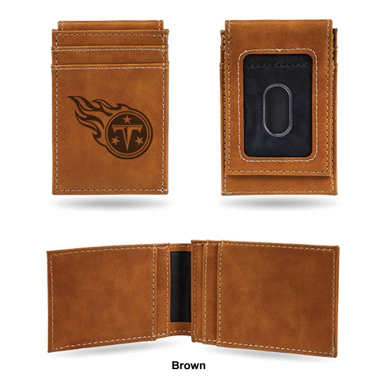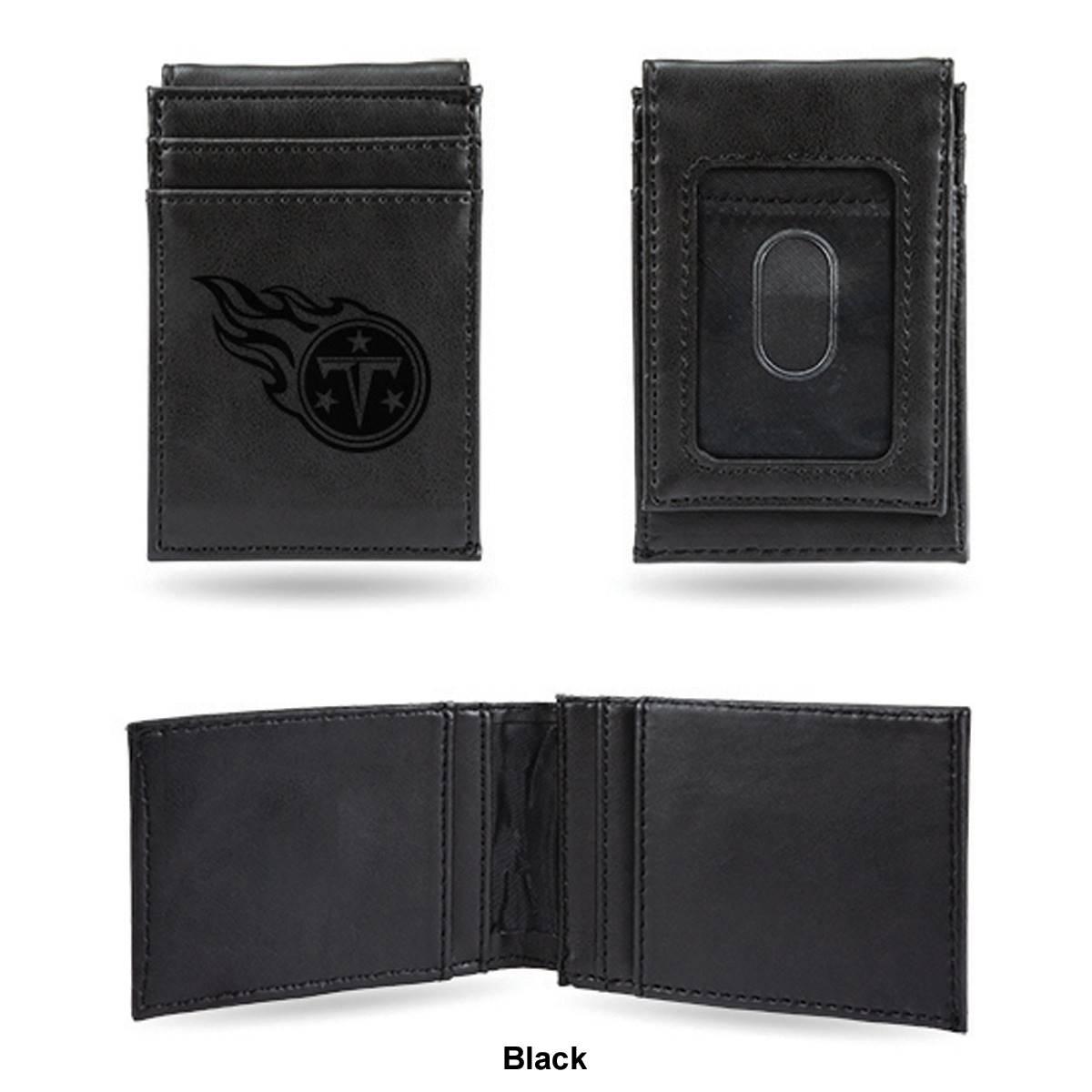 Put your money where your fandom is with this cool Mens NFL Tennessee Titans front pocket wallet. Made from faux leather, the 4-inch long and 2.75-inch wide wallet has a Tennessee Titans embossed logo with an ID window on the front and card slots. Show your love for your favorite team with this front pocket wallet.