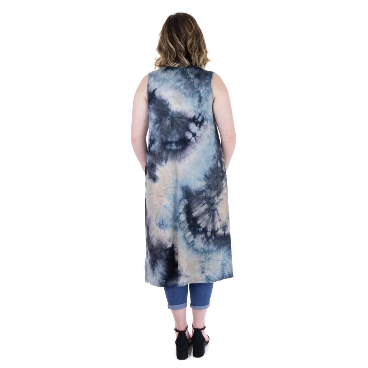 Plus Size 24/7 Comfort Apparel Tie Dye Sleeveless Cardigan