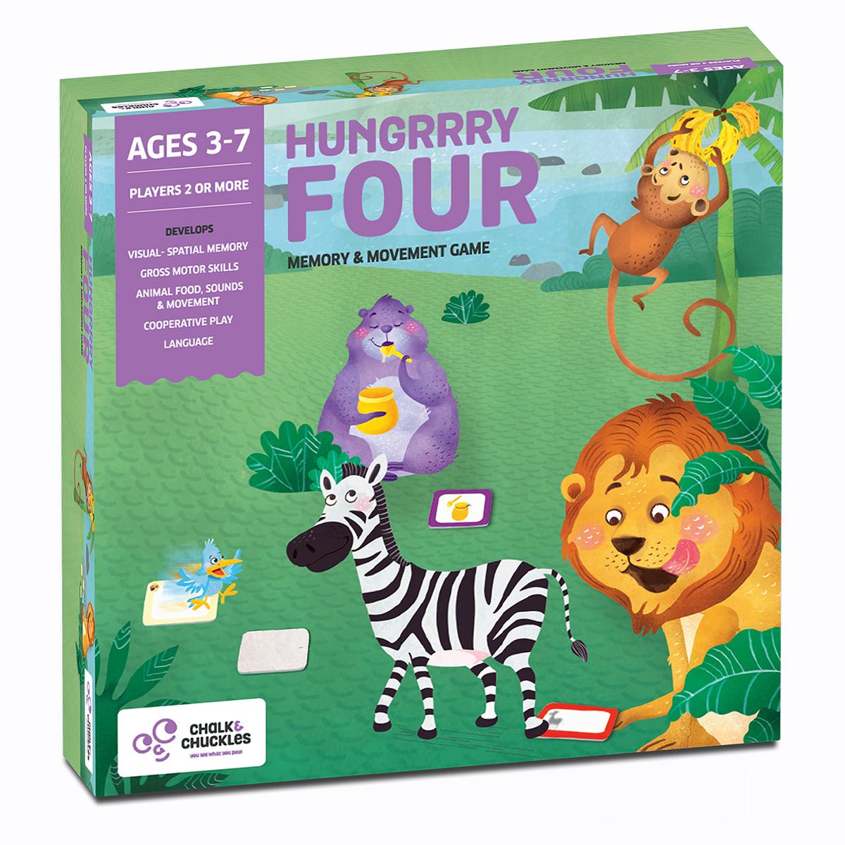 Description The Chalk N Chuckles Hungrrry Four is an adorable memory and movement game of fun and learning for the little ones. Play alone and feed the animals in a simple...